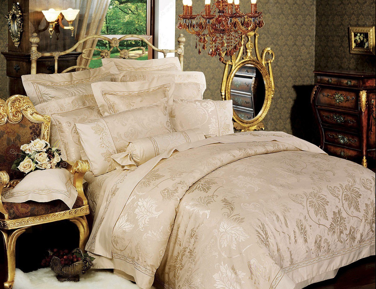 Этот роскошный комплект способен очаровать с первого взгляда: золотистые виноградные листья перенесут частичку солнечной Италии к Вам в спальню. Элегантная, безукоризненно выполненная вышивка подчеркивает классический стиль дизайна, превращая любую обстановку в королевскую спальню.