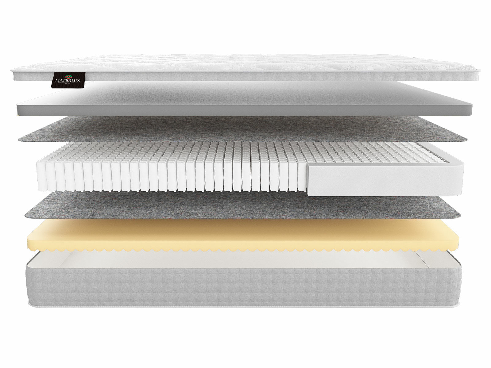 Термофиксированный фетр высокой плотности (500 гр./кв. м; 0,5 см): этот натуральный материал служит в качестве надежной изоляции между пружинами и внешними слоями матраса, обеспечивая дополнительную прочность и комфорт.