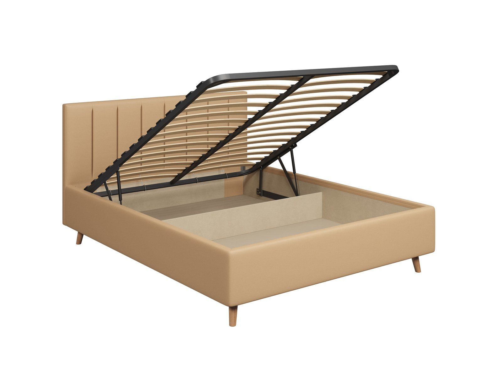 В комплектации с подъемным механизмом кровать имеет вместительный бельевой короб с двумя отделениями.