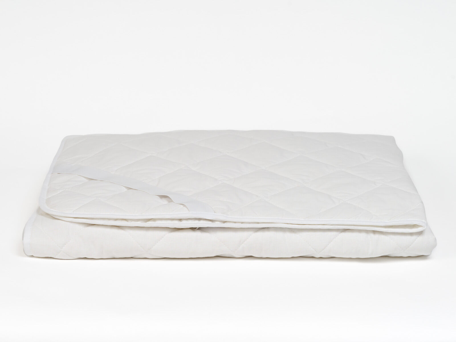 Ткань: 100% хлопок — бязь ГОСТ из средневолокнистого хлопка. Плотность: 228/163 нитей на 10 см²,120 г/м². Цвет белый. Стежка на многоигольной машине, окантовка края из основной ткани, на углах резинки — фиксаторы.