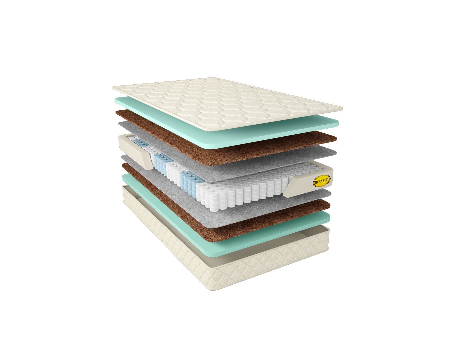 Внутри матраса устанавливаются пружины TFK и слои наполнителей в одинаковой комбинации с каждой из сторон. Пружины размещаются таким образом, что работают, не вовлекая в действие соседние элементы. Так обеспечивается ортопедическое функционирование модели.