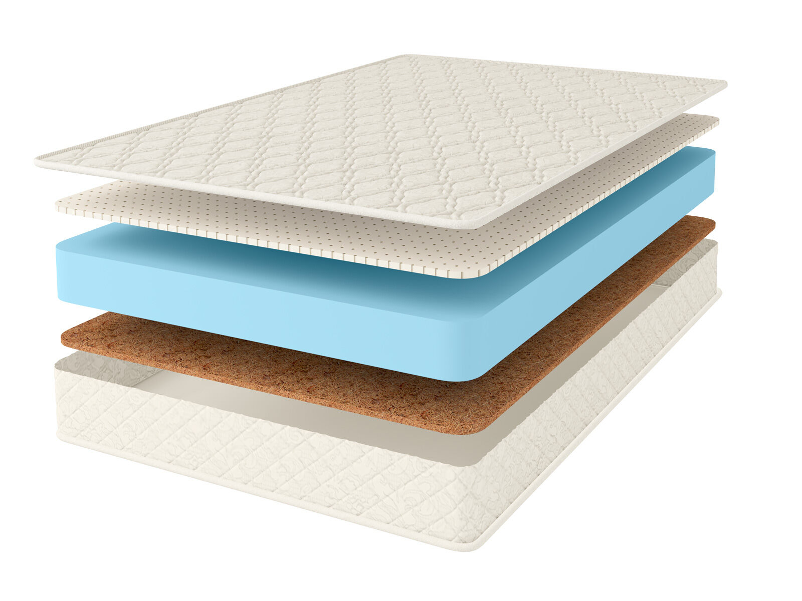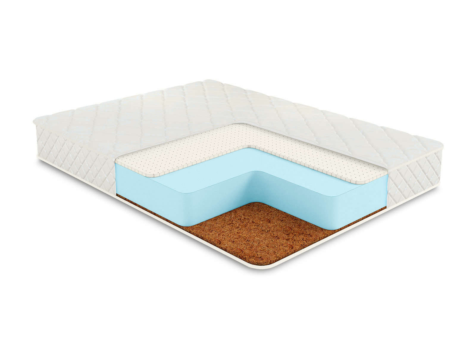 За различную плотность поверхностей отвечают наполнители. Здесь установлены кокосовая койра и натуральный летекс. Сторона с койрой обладает более высокой жёсткостью. Кроме этого она имеет выраженные ортопедические качества. Плита обеспечивает оптимальную и правильную поддержку для спины и позвоночника.