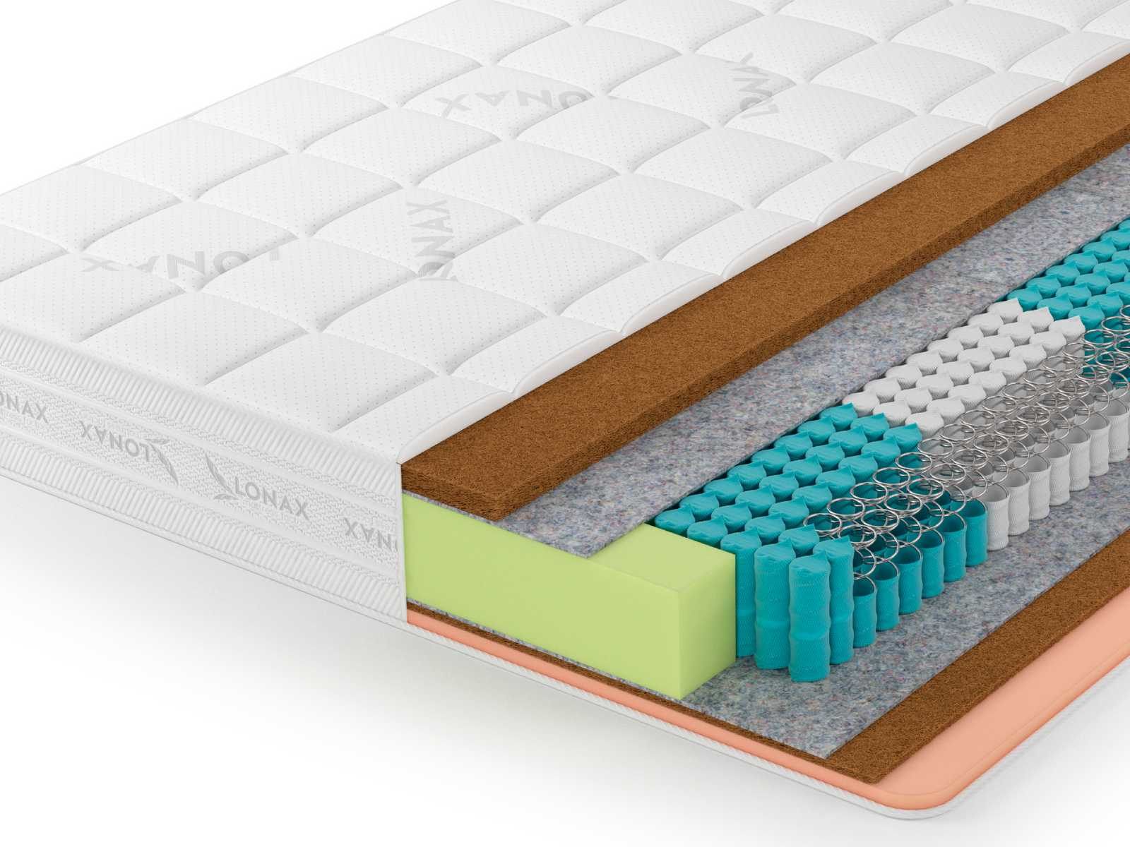 Двусторонний матрас Lonax Cocos-Medium Econom S1000 5 Zone отличается разной жёсткостью сторон.