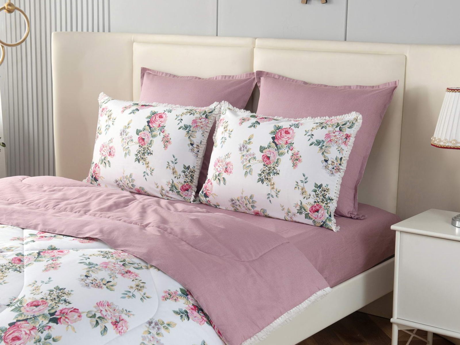В комплекты комфортеров с одеялом Бернадетт входят наволочки, простыня и легкое всесезонное одеяло. Оцените это современное и очень удобное решение, которое идеально подходит тем, кто не любит возиться с пододеяльниками.