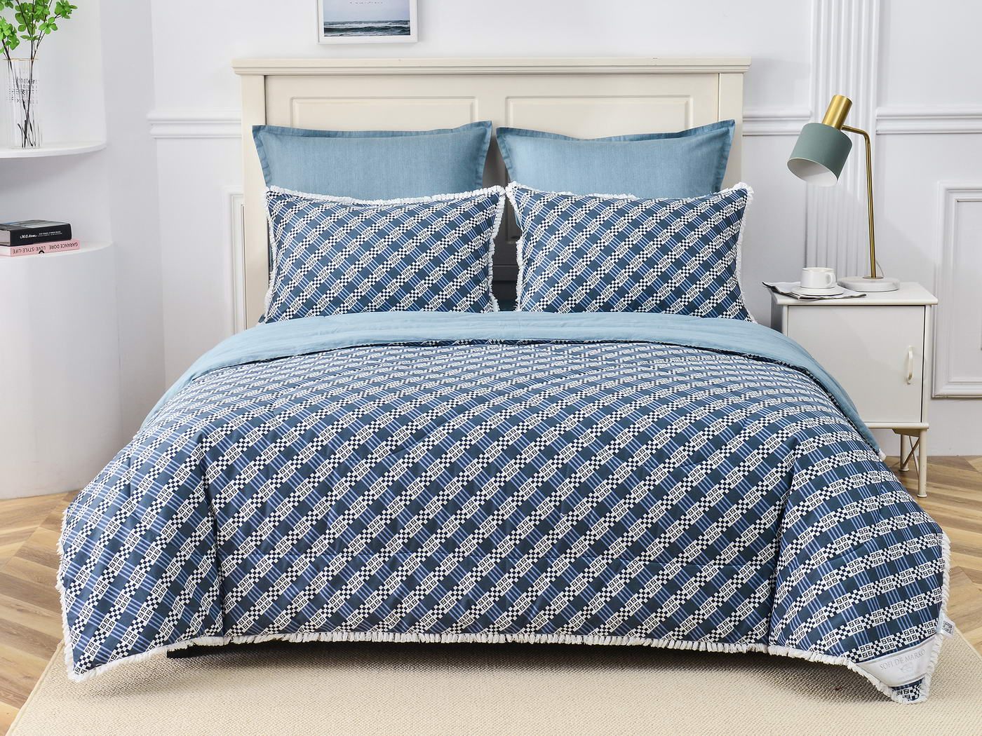 Особенность: кант на одеяле и наволочках декорирован бахромой.