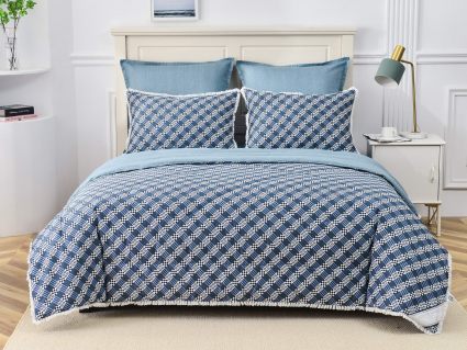 В комплекты комфортеров с одеялом Бернадетт входят наволочки, простыня и легкое всесезонное одеяло. Оцените это современное и очень удобное решение, которое идеально подходит тем, кто не любит возиться с пододеяльниками.