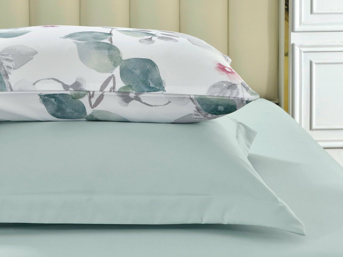 Наволочки 70х70см изготовлены из однотонной ткани, пошив с ушками.