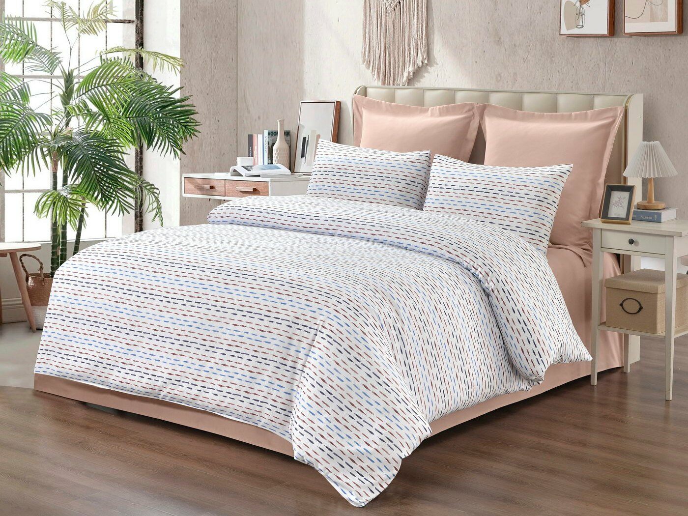 Пошив: пододеяльник на пуговицах, наволочки с клапаном.