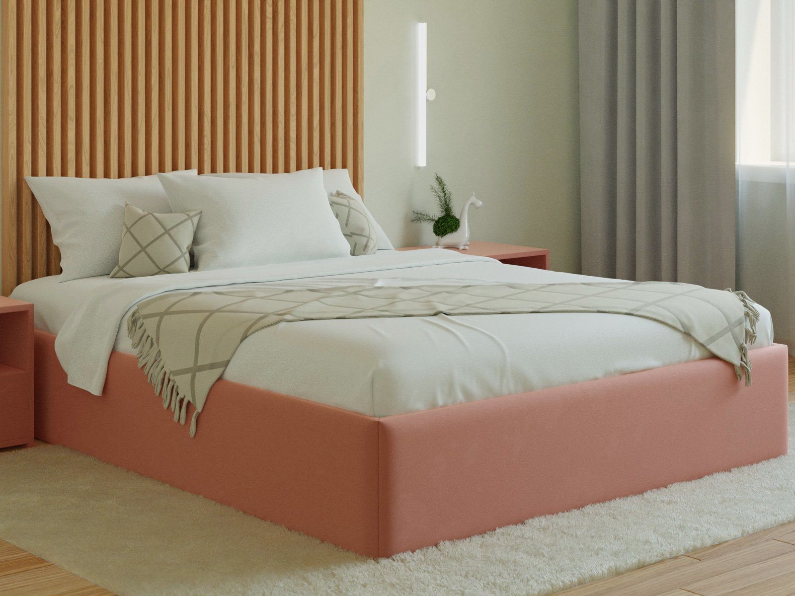 Мягкая кровать с обивкой из велюра.