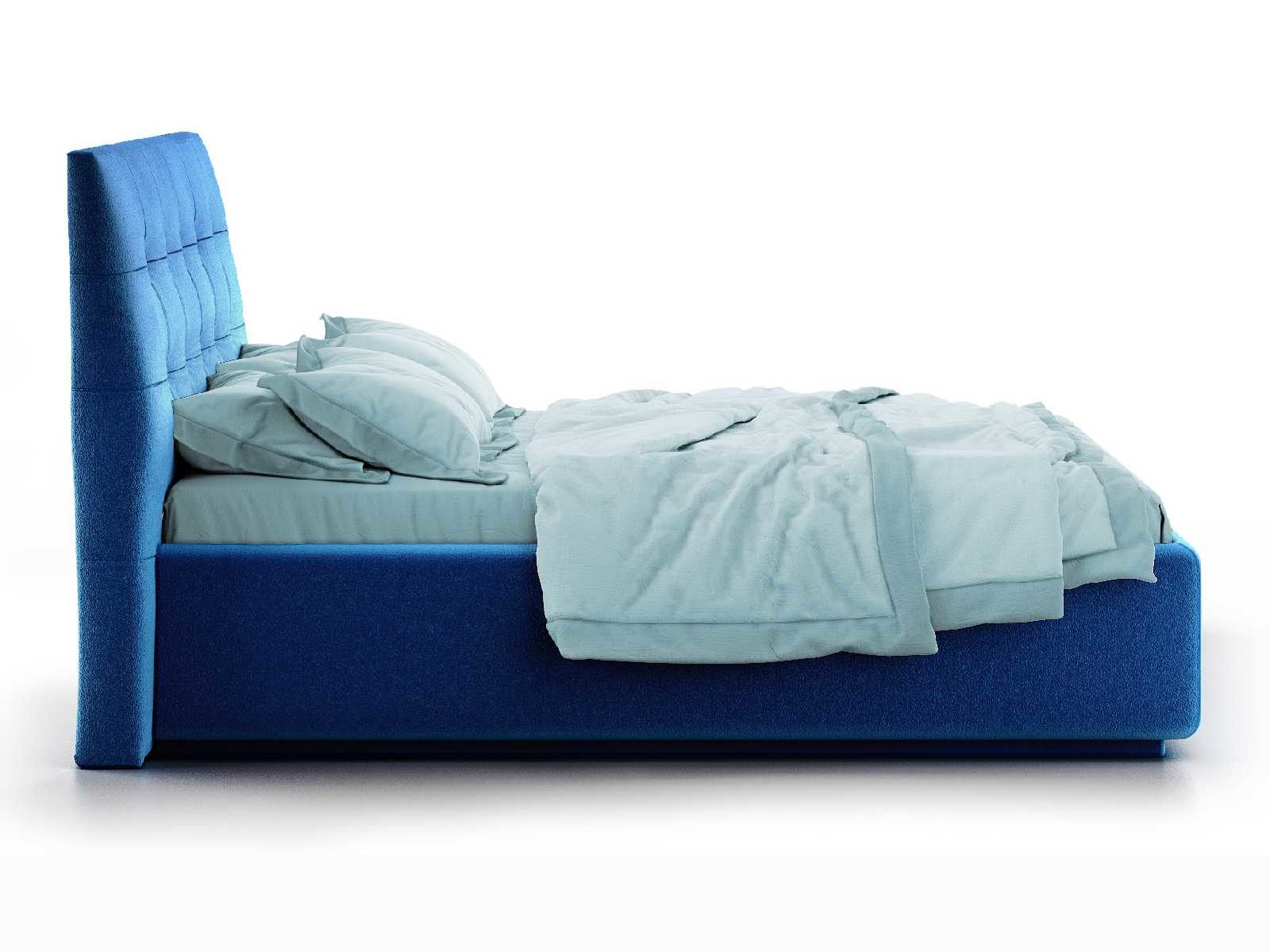 Кровать укомплектована IQ с подъемным механизмом и ящиком для белья без дна (дополнительная платная опция - дно к ящику IQ из HDF (ХДФ). Каркас кровати на цоколе, декоративный чехол на цоколе съёмный. Глубина ящика для белья - 30 см, без ограничения нагрузки на ящик.