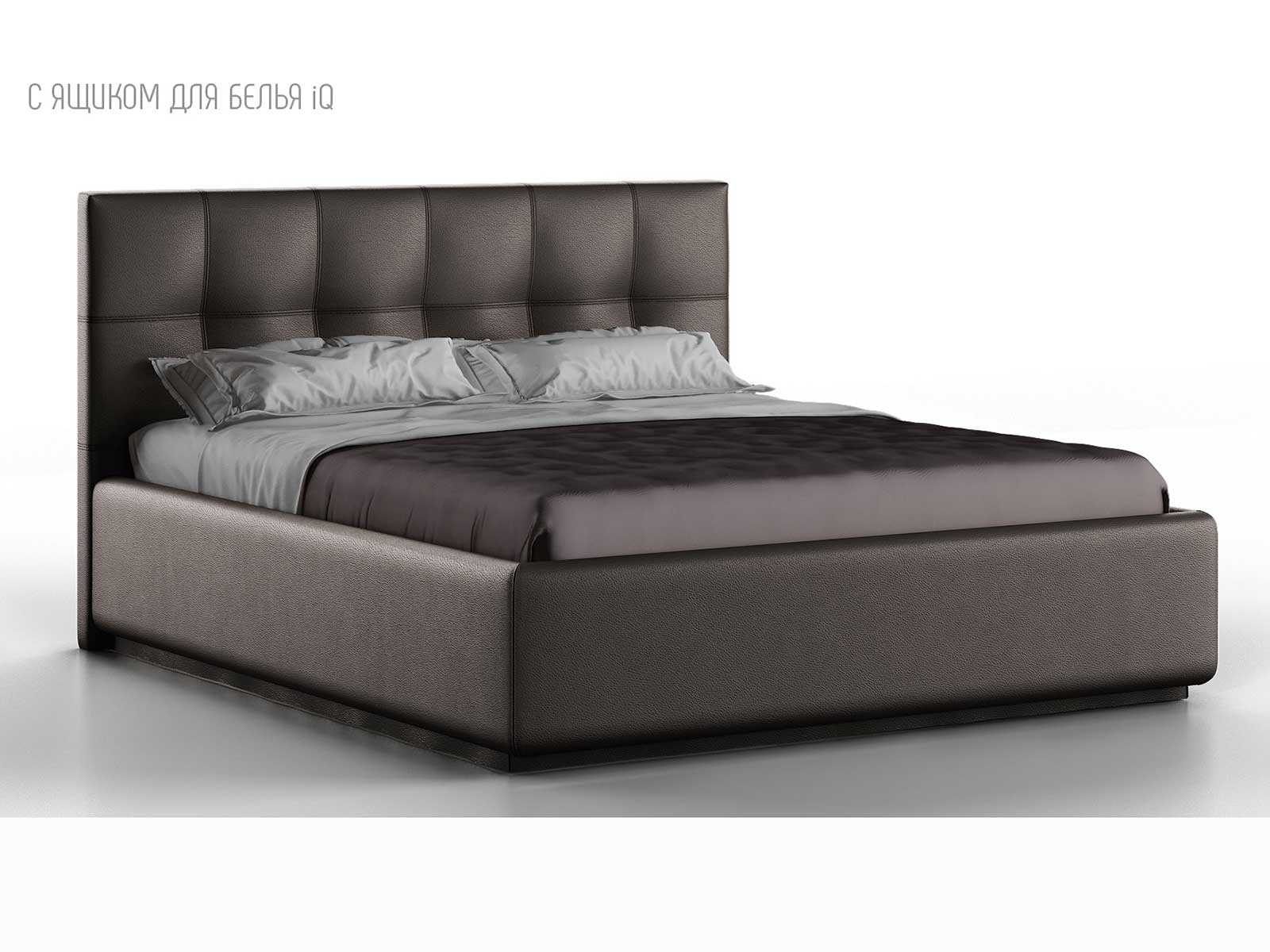 Кровать укомплектована IQ с подъемным механизмом и ящиком для белья без дна (дополнительная платная опция - дно к ящику IQ из HDF (ХДФ). Каркас кровати на цоколе, декоративный чехол на цоколе съёмный. Глубина ящика для белья - 30 см, без ограничения нагрузки на ящик.