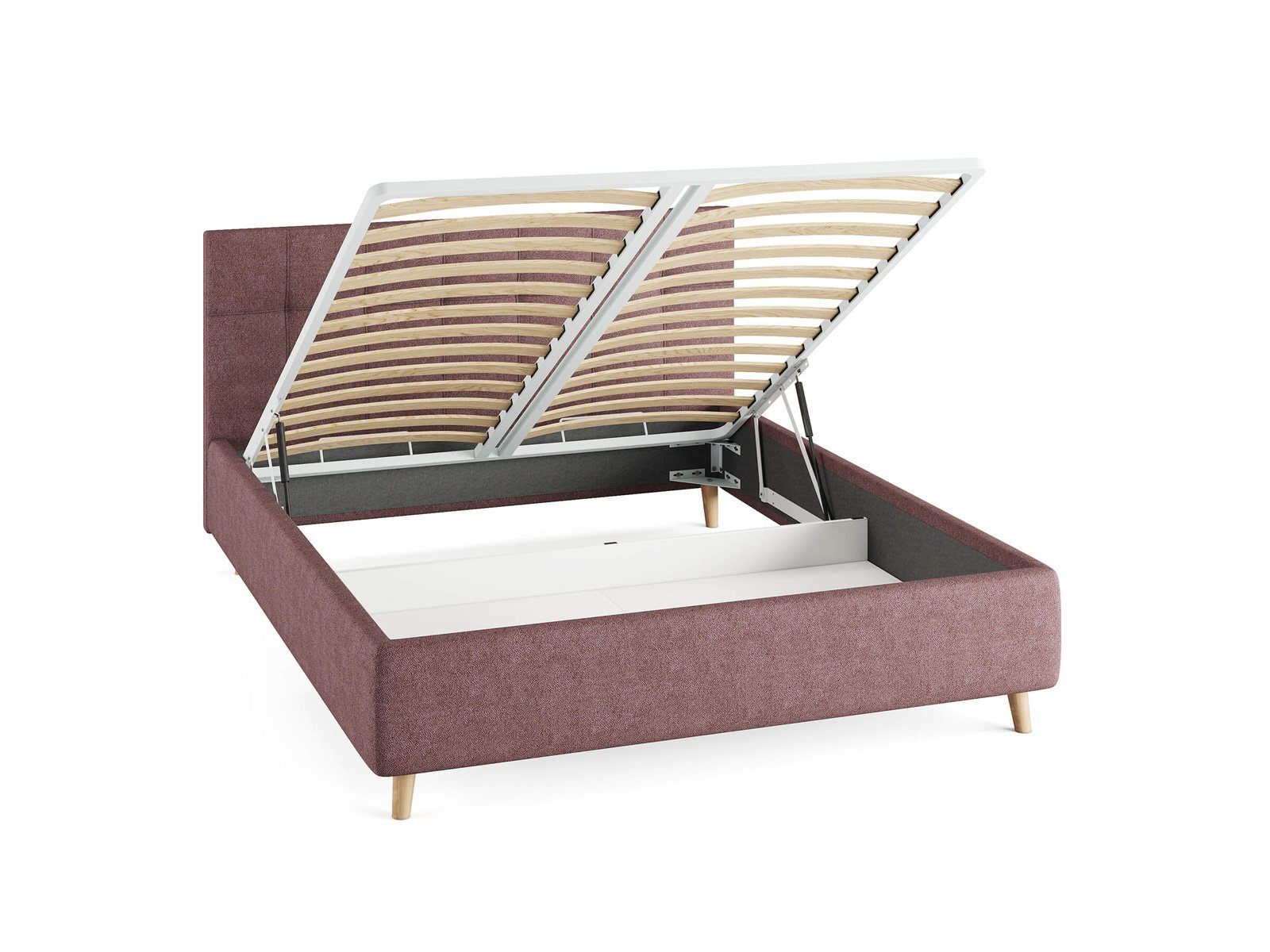 Кровать комплектуется металлическим основанием и подъемным механизмом со вместительным бельевым ящиком. Дно бельевого ящика легко сдвигается для обеспечения уборки под кроватью.