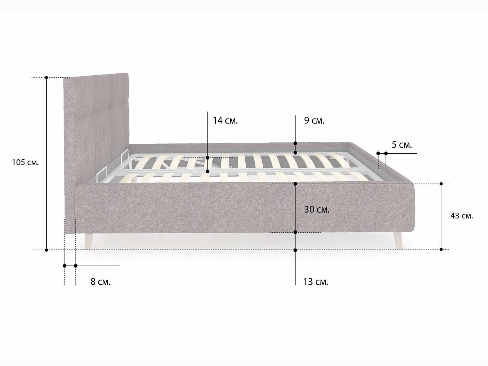 Допустимая высота матраса - 30 см.