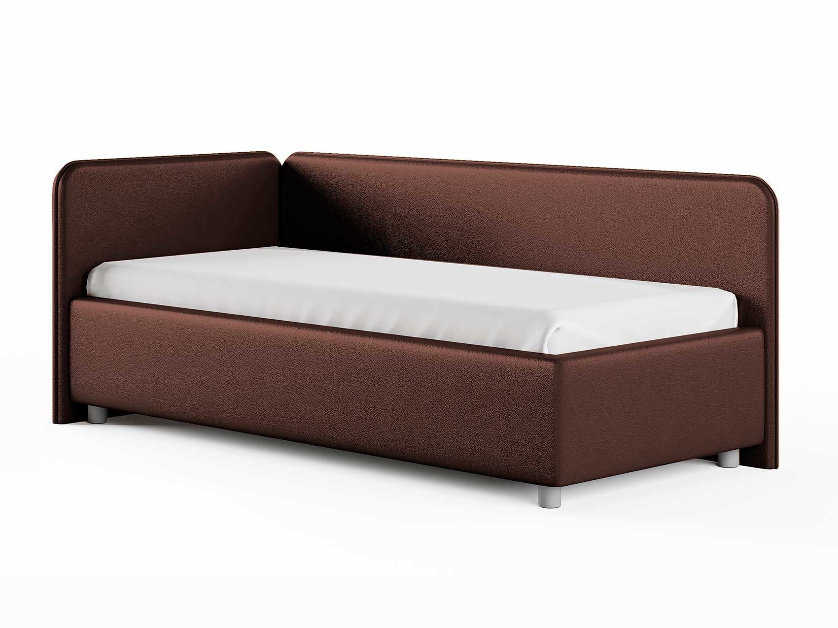 Односпальная кровать в современном стиле. Кровать-софа с одной боковой спинкой. Идеально подходит для квартир с небольшой площадью, детских и подростковых спален, гостевых комнат. Боковую спинку кровати можно изготовить на выбор на правую или левую сторону. Модель изготовлена из ДСП.