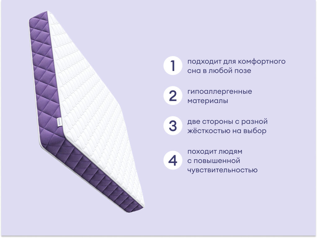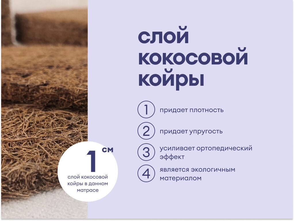 Матрас Базилик Фреш 25 Кокос — это идеальное сочетание комфорта и поддерживающих свойств, подходящее для любого спального места. С двумя уровнями жёсткости и гипоаллергенными материалами он обеспечивает здоровый и уютный отдых. С этим матрасом ваш сон станет комфортным и здоровым, как если бы вы отдыхали на юге Франции.