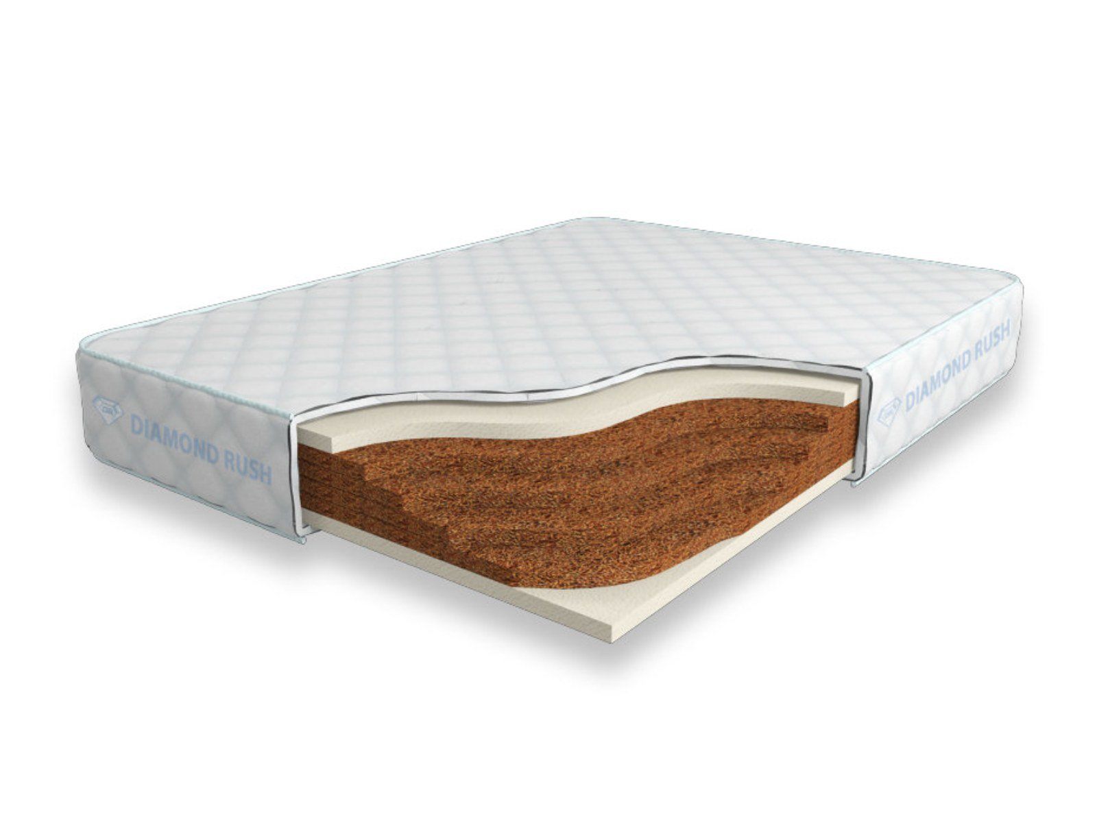 Матрас Diamond Rush Cocos Lite 18 SD является беспружинным, т.е. не имеет в своей основе пружинного блока. В основе модели идут кокосовые плиты, их количество зависит от требуемой высоты матраса. Сверху и снизу для большего комфорта и придания средней жесткости прокладываются листы по 3см искусственного латекса. Эта модель имеет идентичные по жесткости стороны.
