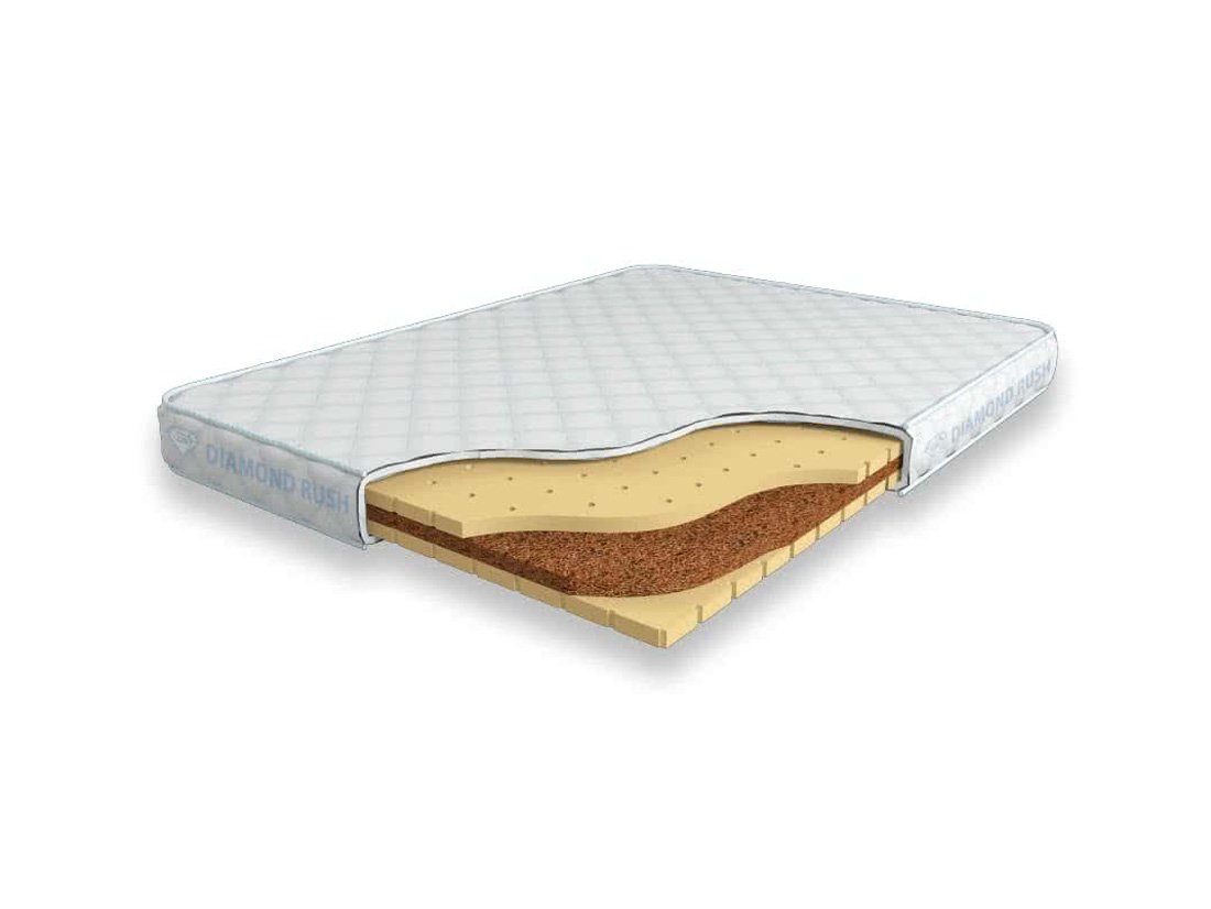Матрас Diamond Rush Cocos Lite 9 DR является беспружинным. В основе модели идет кокосовая плита, сверху и снизу для большего комфорта и придания средней жесткости прокладываются листы по 3 см натурального перфорированного латекса.