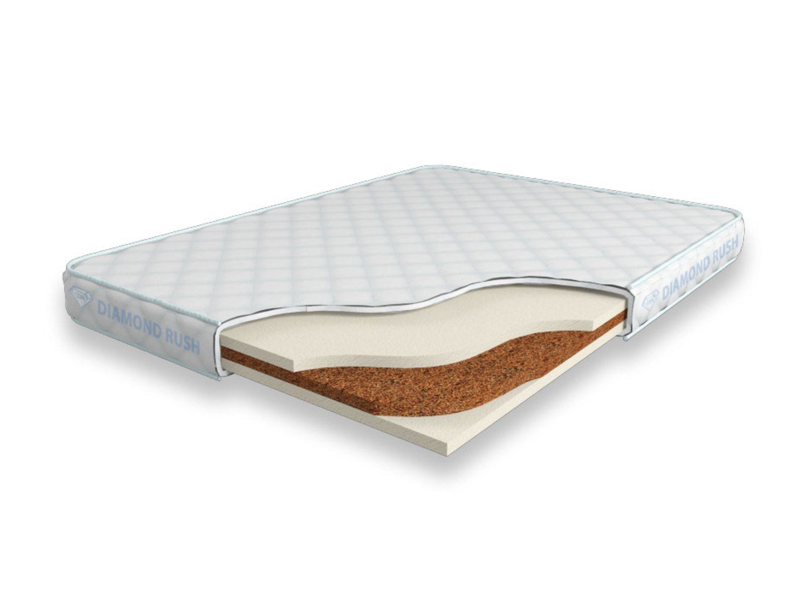 Матрас Diamond Rush Cocos Lite 9 SD является беспружинным, т.е. не имеет в своей основе пружинного блока. В основе модели идут кокосовые плиты, их количество зависит от требуемой высоты матраса. Сверху и снизу для большего комфорта и придания средней жесткости прокладываются листы по 3см искусственного латекса. Эта модель имеет идентичные по жесткости стороны.
