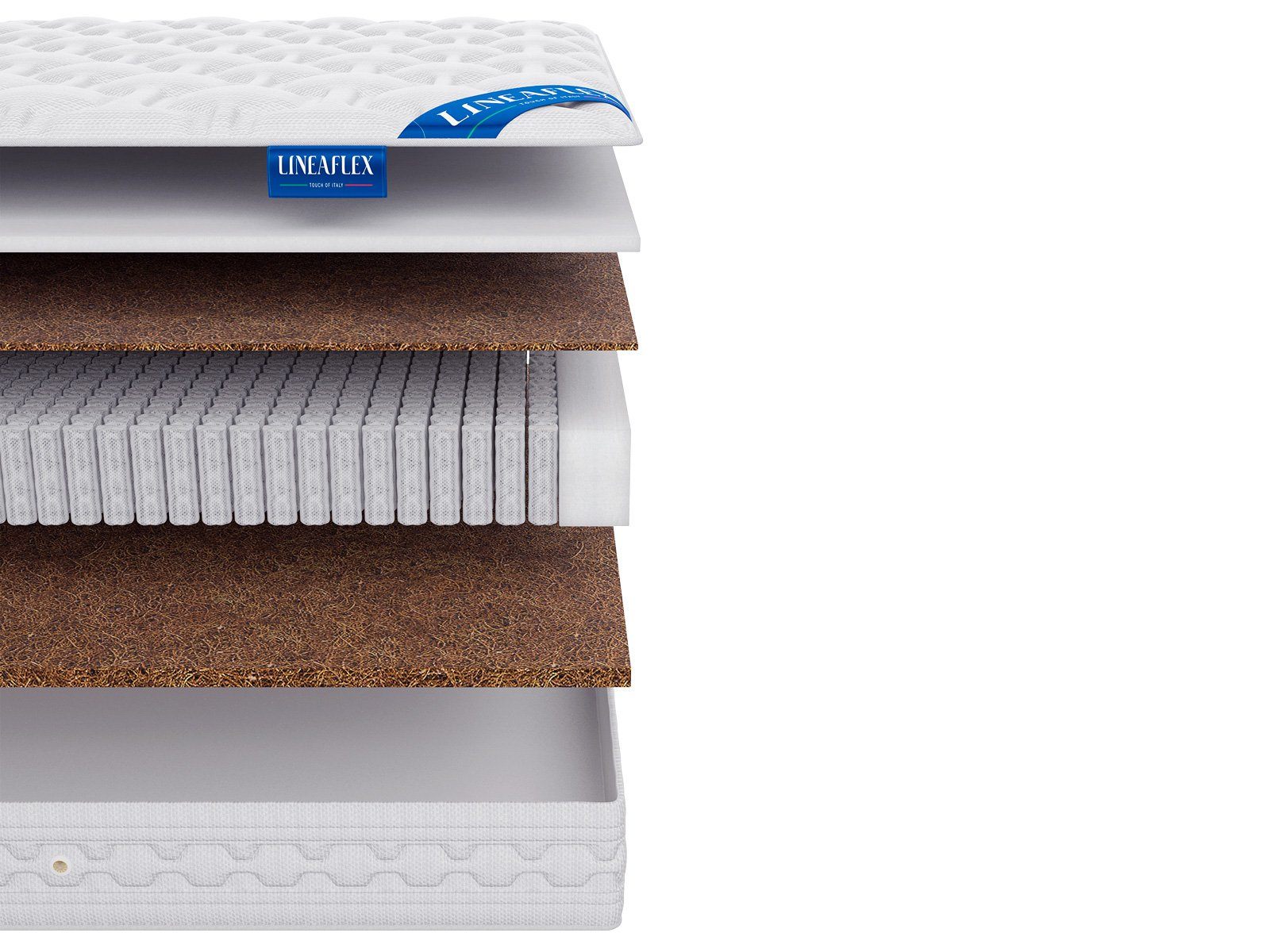 Кроме пены в матрасе присутствую слои, состоящие из натурального волокна кокосовой пальмы. Материал примечателен чрезвычайно высокой жёсткостью и яркими опорными характеристиками. Койра – это один из лучших ортопедических наполнителей.