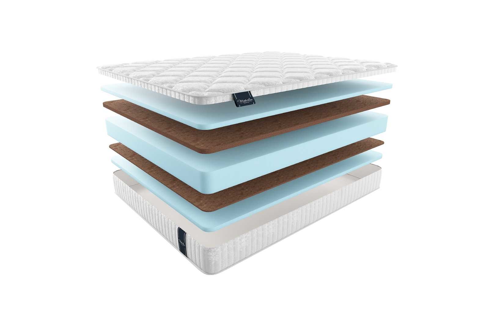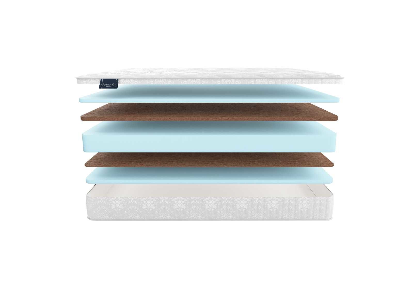 По сторонам от блока симметрично расположены слои койры. Более жёсткую поверхность представляет 3 см плита материала, половина помягче реализована при помощи 1 см полотна. Койра – наполнитель, обладающий природной жёсткостью и натуральным происхождением. Ортопедические возможности материала ярко выражены, поэтому слой устанавливается для усиления поддерживающих свойств матраса.