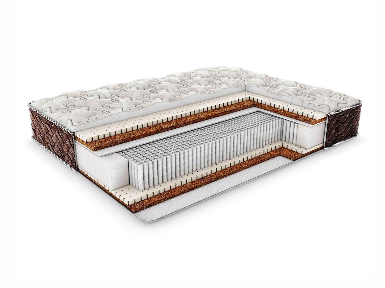 В матрас встроен независимый пружинный блок, вмещающий около 1000 спиралей на спальное место. Механизм обеспечивает ортопедическое удержание всего корпуса и гармоничное распределение давления по всей площади матраса.