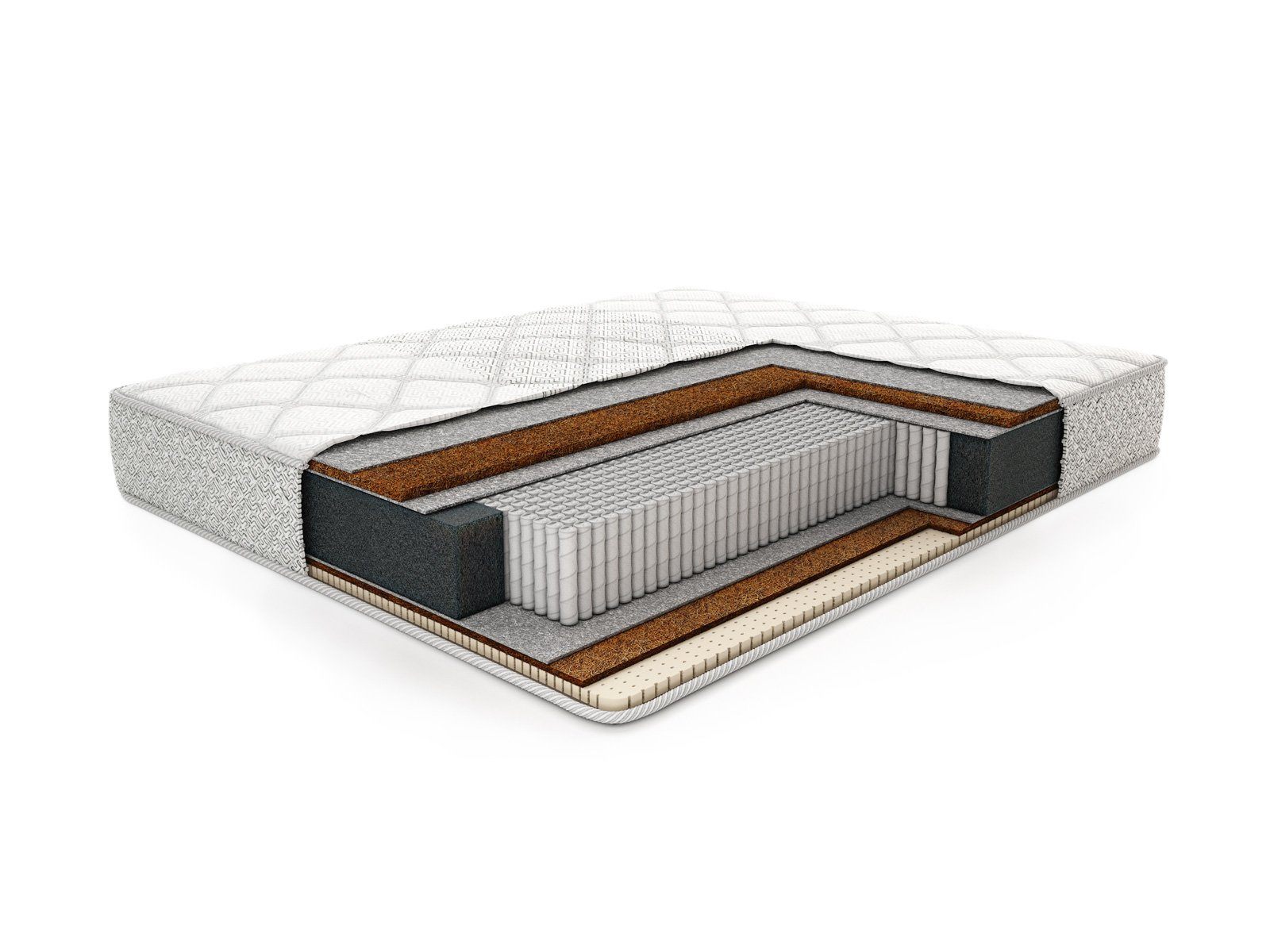 Противоположная поверхность получила один лишь слой кокоса, что передаёт ему высокую жёсткость и еще более яркие поддерживающие способности.