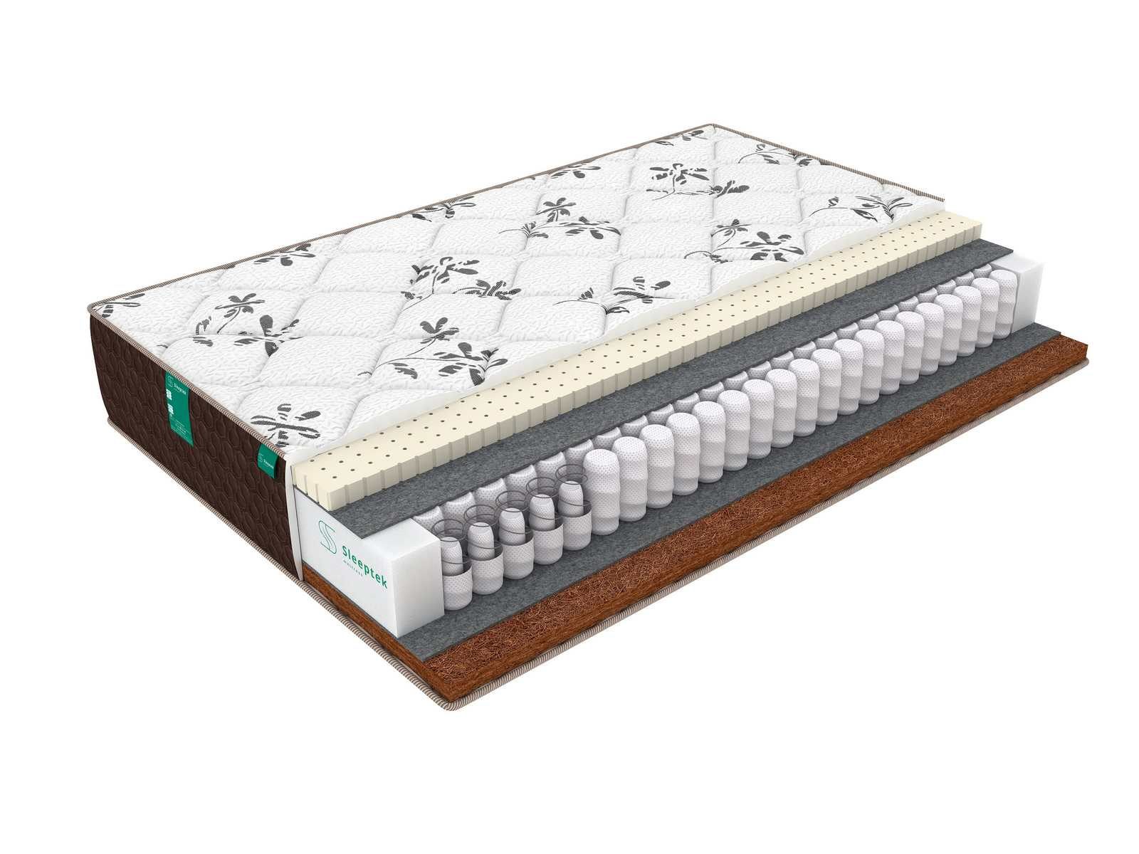 Ортопедический матрас Duplex Latex Cocos с различной жесткостью поверхностей – жесткая и мягкая. В основе модели лежит блок пружин независимого типа блока пружин Double Spring, который разработан по технологии «пружина в пружине». Более жесткие пружинки небольшого диаметра располагаются внутри более мягких крупных пружин, что помогает усилить ортопедический эффект матраса вдвое. Блок позволяет равномерно распределять нагрузку и поддерживать позвоночник в течение всего времени сна.По обеим сторонам блока находятся слои термовойлока, защищающего наполнители от контакта с пружинами и продлевающего срок службы матраса.