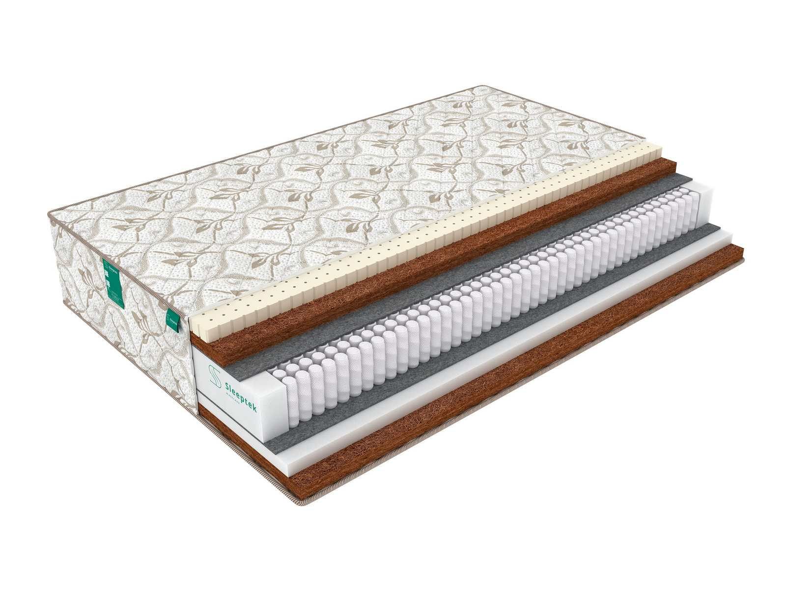 Более мягкая сторона проложена слоем натурального латекса поверх слоя кокосовой койры. Это обеспечивает спальной поверхности упругость и комфортные качества. Более жесткая сторона имеет обратное чередование слоев – кокосовая койра расположена поверх ортопедической пены, что придает этой стороне жесткость и дополнительные ортопедические свойства.