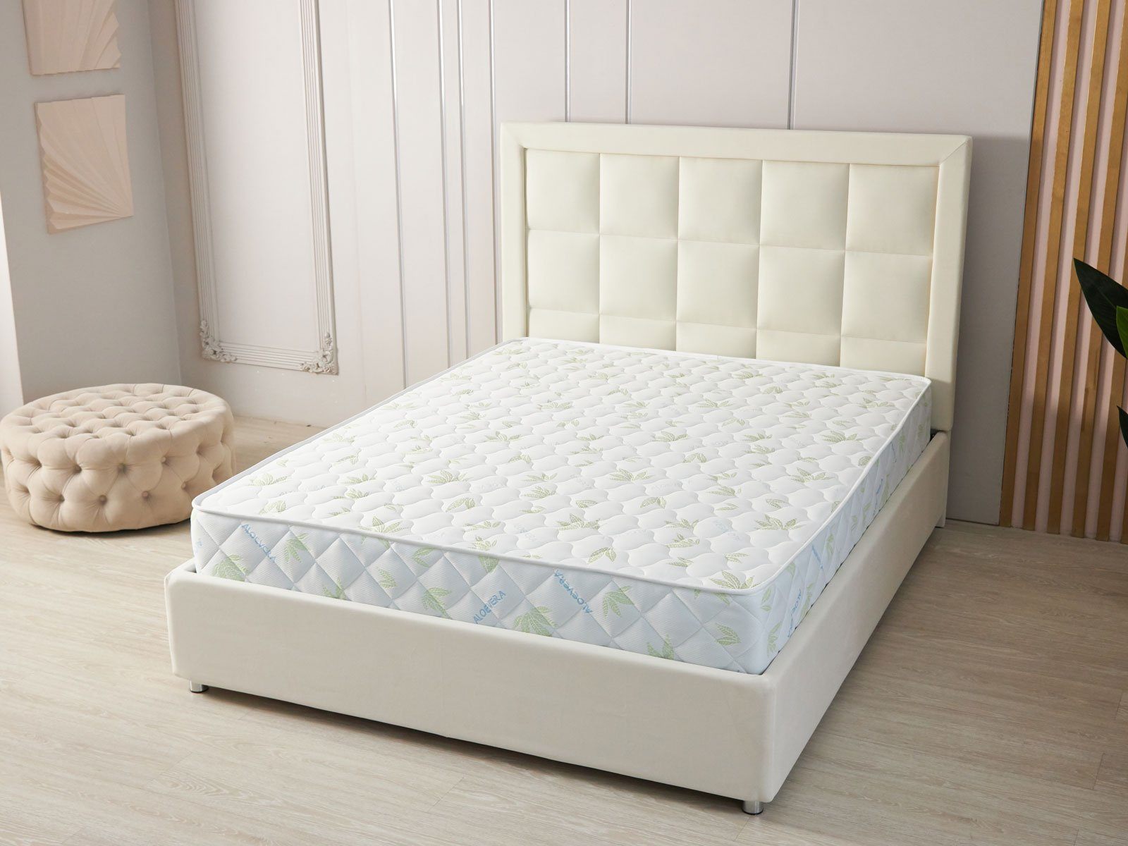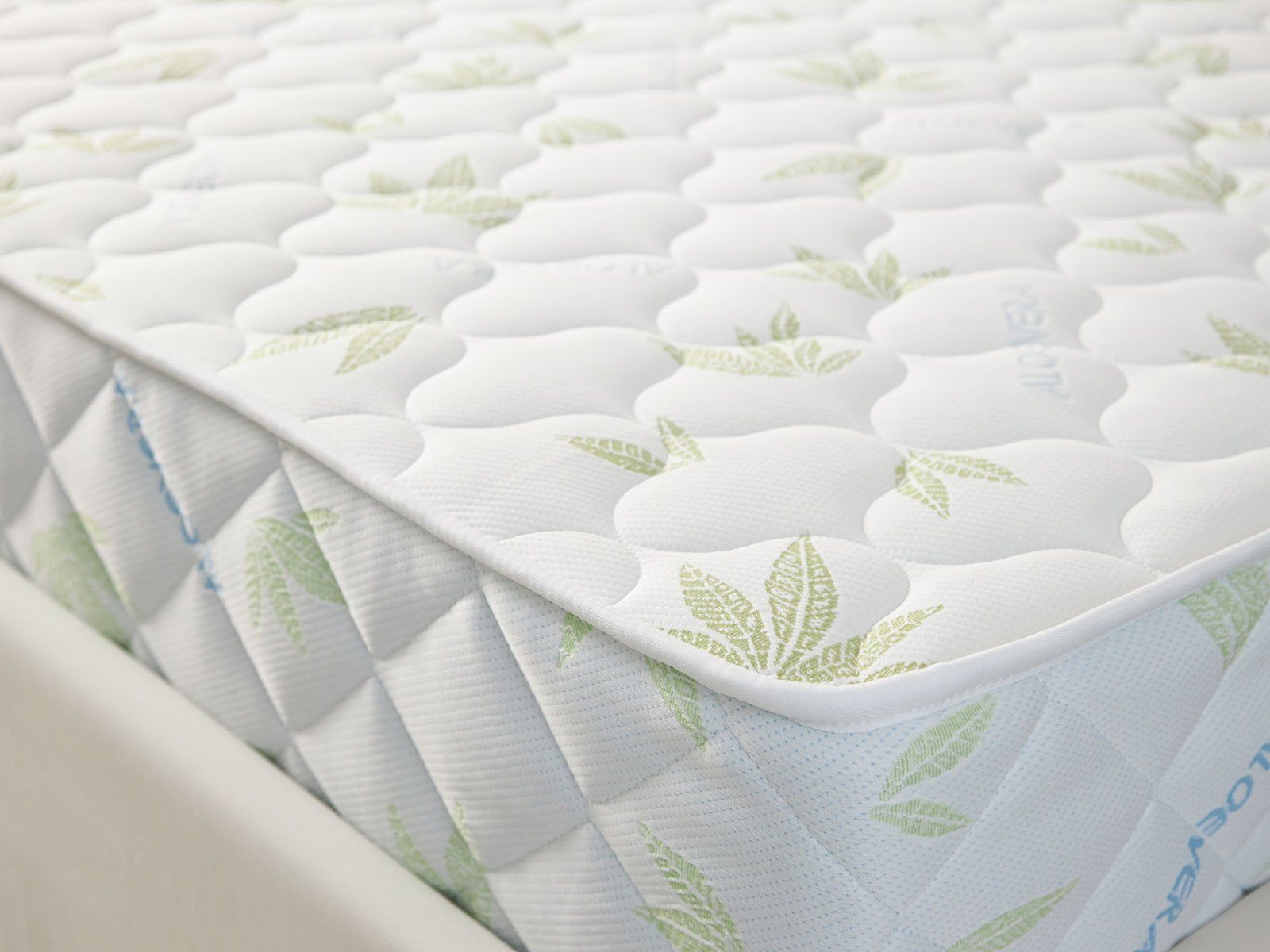 Матрас изготовлен в несъёмной обивке из трикотажа «Алое». Ткань простёгивается вместе с 200 гр синтепона, поэтому поверхности имеют мягкий и приятный к телу рельеф.