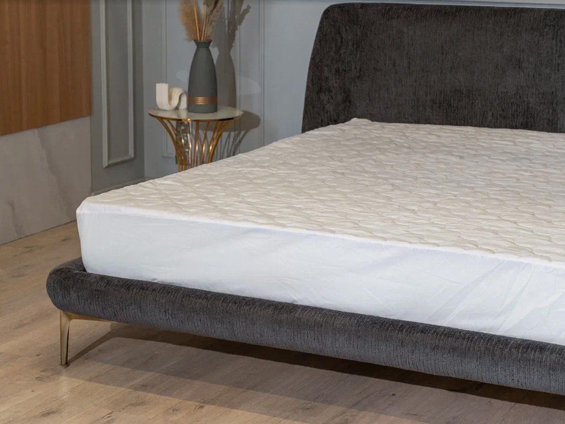 Спальная поверхность чехла получила фигурную стёжку и аккуратный кант, чехол также защищает и боковые части матраса. Наматрасник удобно фиксируется с помощью вшитой по периметру резинки. Изделие надевается на матрас по методу натяжной простыни.
