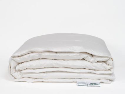 Всесезонное одеяло Воздушный Вальс с 100% пуховым наполнителем в снежно-белом чехле с атласным белым кантом. Ткань чехла - 100% хлопок – батист с антибактериальной обработкой "ACTIGARD".