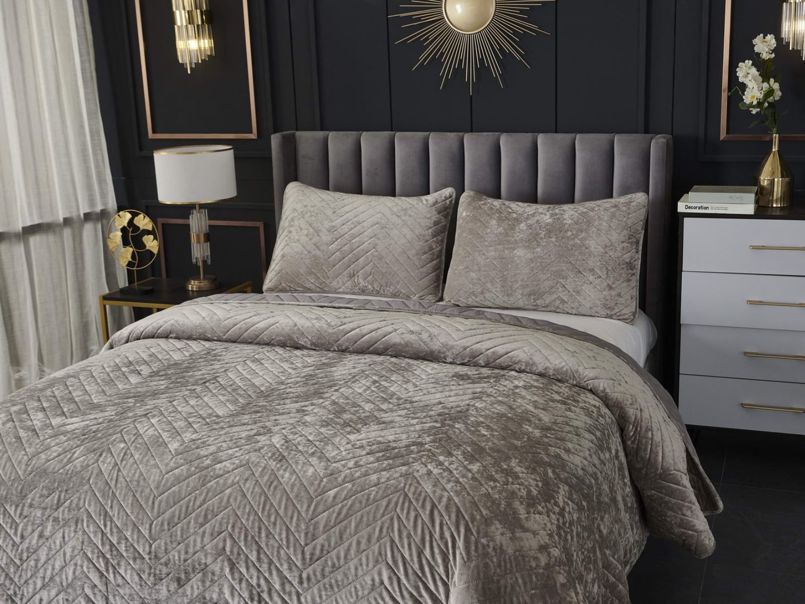 Покрывала Фернанд выглядят как будто сошли с картин, изображающих королевские покои. Бархатную ткань начали изготавливать еще в Средние века, её использовали в оформлении дворцов и изготавливали плащи и головные уборы для знати. Теперь и вы можете прикоснуться к этой роскоши! Бархатная текстура приятная на ощупь, а из-за особого плетения ткани, игра света на ней выглядит благородно. Поэтому покрывало Фернанд создаст необычайно уютную атмосферу в вашей спальне. Цветовая гамма разнообразна и включает восемь благородных оттенков: капучино, бежевый, изумруд, горчичный, терракотовый, пепельная роза, серый, стоун. За покрывалом Фернанд легко ухаживать: стирка при температуре 30 градусов, вручную или в машинке. Важно хорошо просушить изделие! При правильном уходе вещь прослужит долгие годы не потеряв форму и цвет.