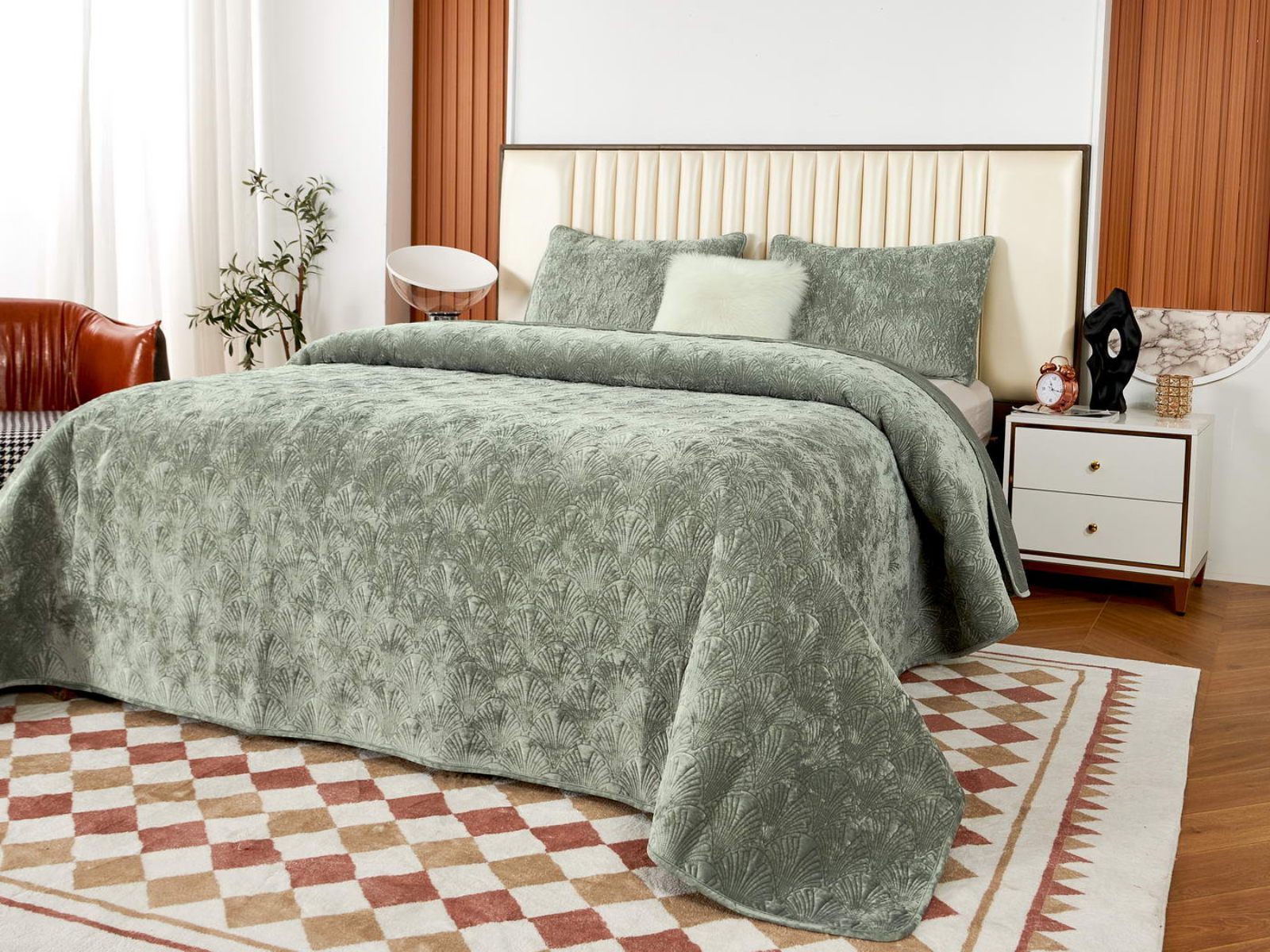 Очаровательное покрывало "Розалин" – идеальный спутник вашего отдыха и уюта. Это воплощение комфорта и стиля создано из высококачественного бархата в различных трендовых цветах и обязательно подчеркнёт уникальность вашего интерьера.