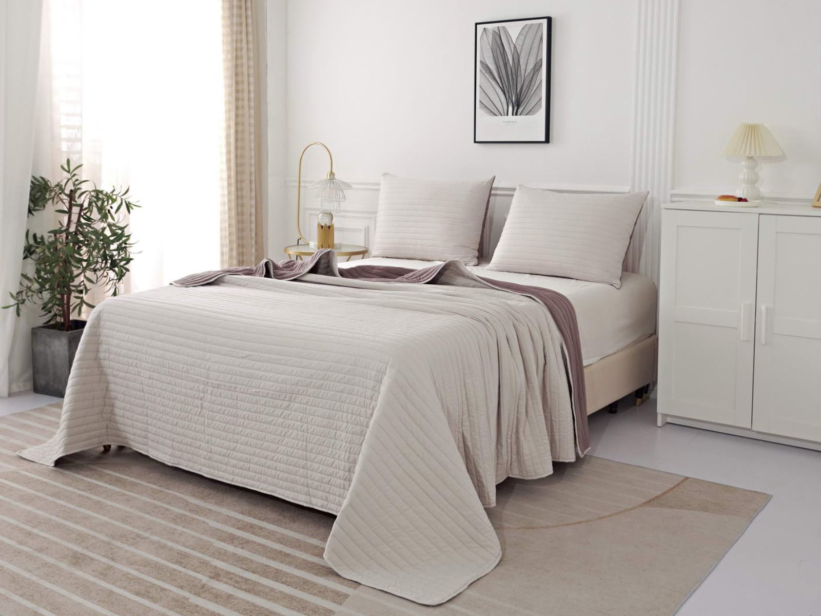 Двусторонние стеганные покрывала Самуэль выполнены из вискозы и хлопка, они легкие и прочные. В комплект входят покрывало и одна либо две наволочки (50х70 см) из аналогичного материала в зависимости от размера, вы можете использовать покрывало по назначению, либо в качестве постельного белья. В любом случае, вы будете в восторге от этого комплекта!