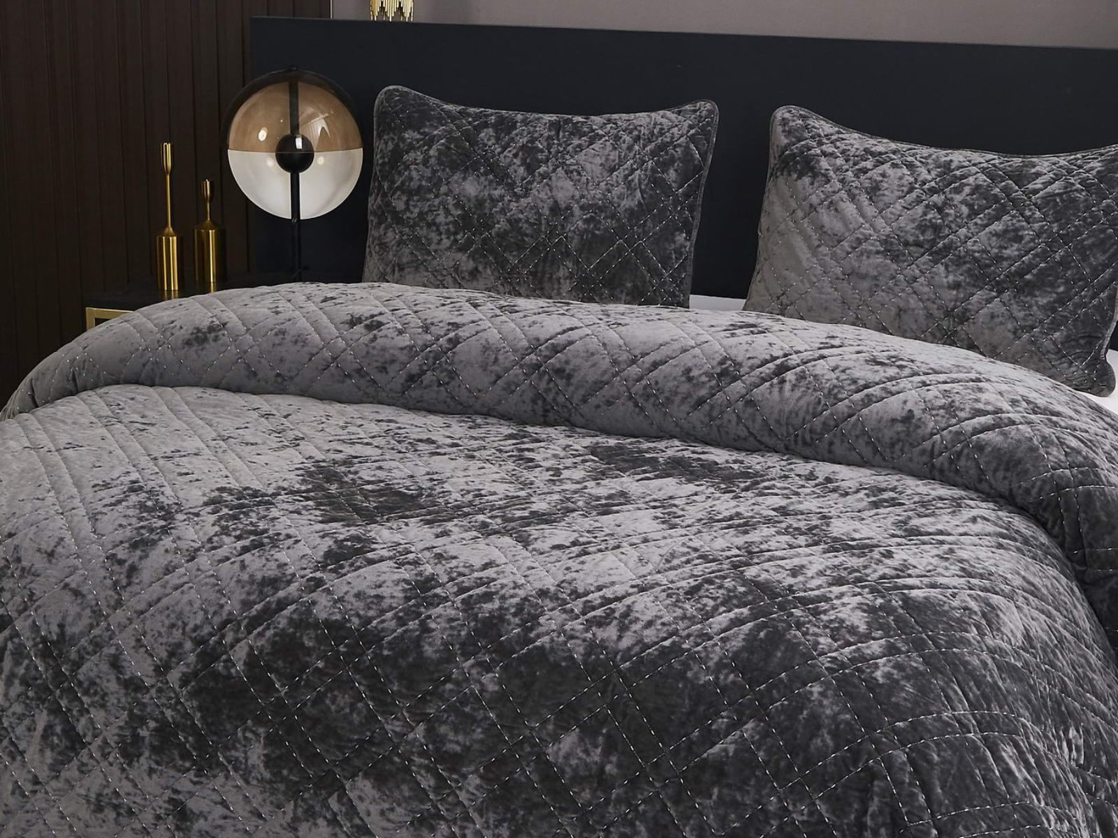 Покрывало Селена выполнено в девяти оттенках: пудра, антрацит, беж, изумруд, капучино, пепел роза, серебро, стоун, терракот. Они подойдут практически для любого интерьера, от классического, до модерна или романтического. Стеганое бархатное покрывало будет необыкновенно смотреться на вашей постели. В комплект входят покрывало и одна либо две наволочки (50х70 см) из аналогичного материала в зависимости от размера.