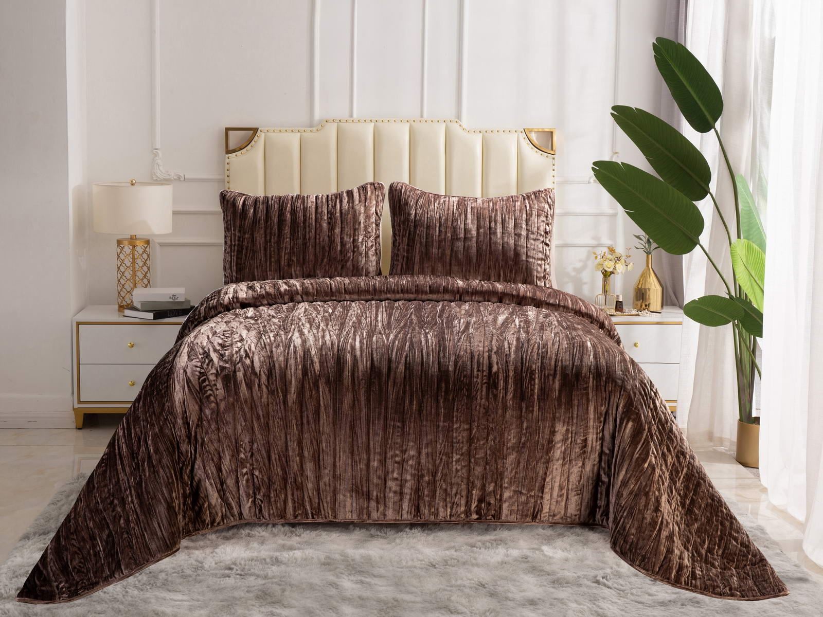 Бархатное покрывало Теона от популярного в России бренда постельного белья класса «премиум» Sofi de Marko станет главным украшением вашей спальни.