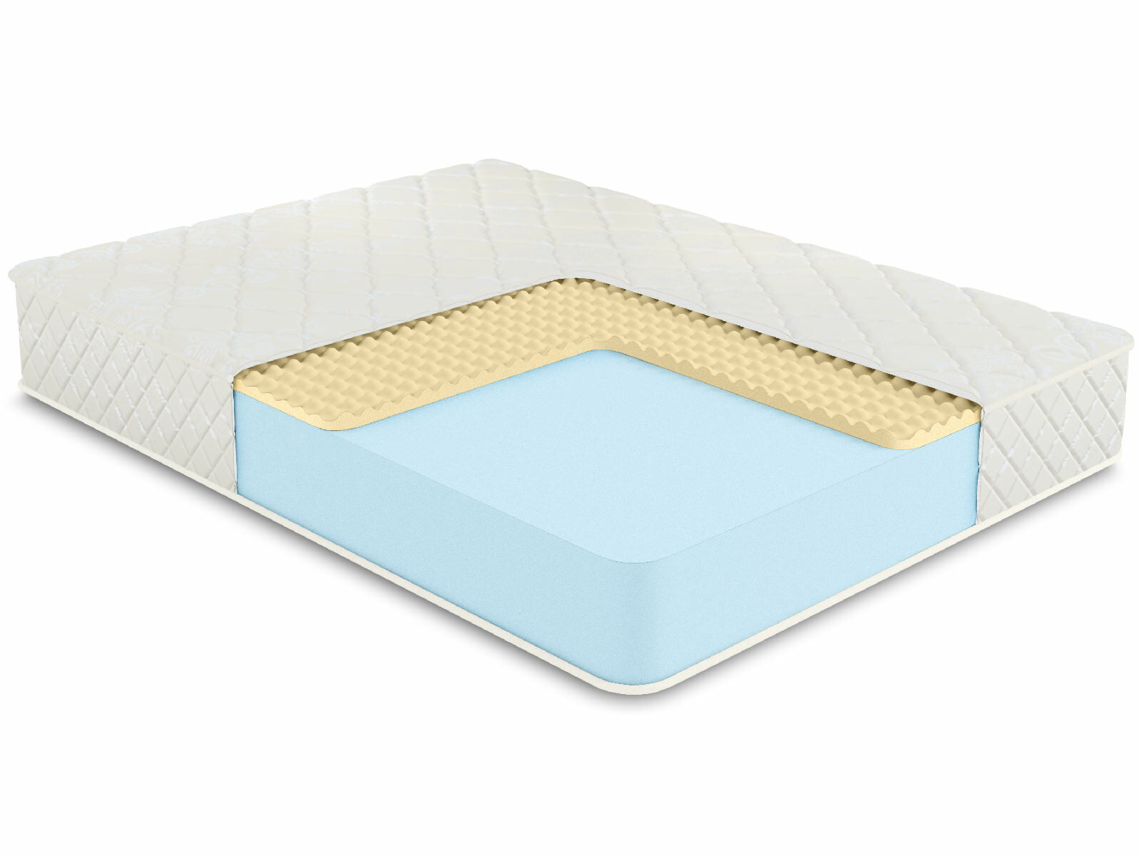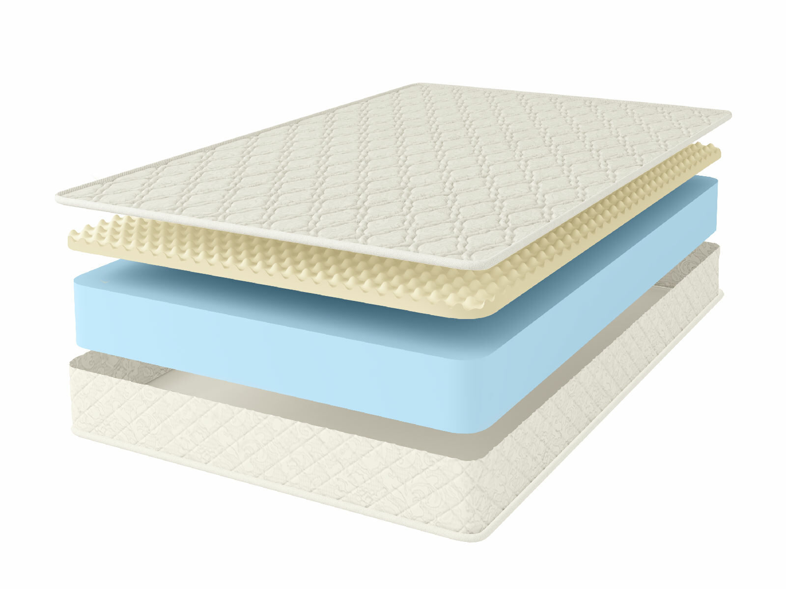 Чехол матраса из хлопкового жаккарда, который обладает высокой износостойкостью, простеган на Холлконе и имеет очень длительный срок службы. Ткань чехла может немного отличаться по рисунку, а также по оттенку цвета, это не влияет на ее свойства и качество.