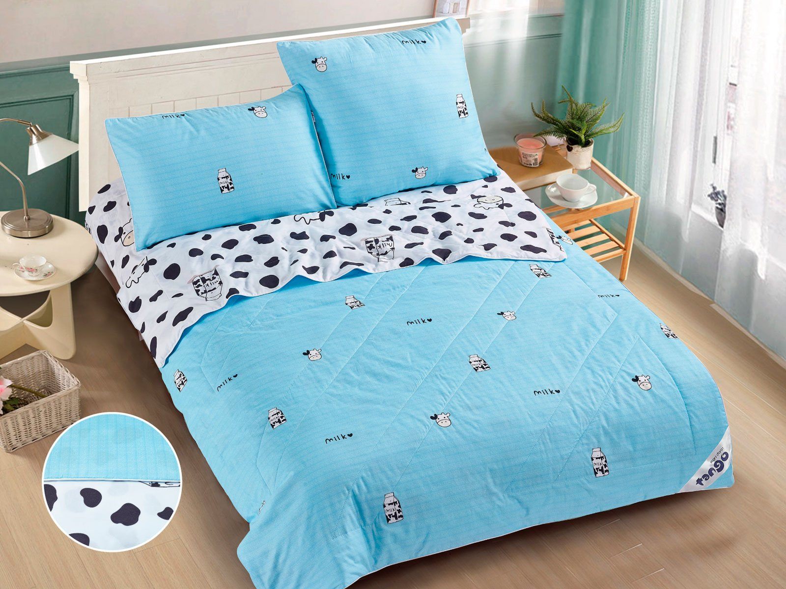 В данный комплект вместо пододеяльника входит облегченное одеяло. Комплект подойдет тем, кто устал от мучительного натягивания пододеяльников на одеяло.