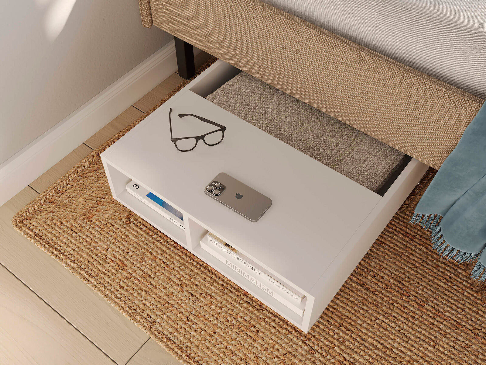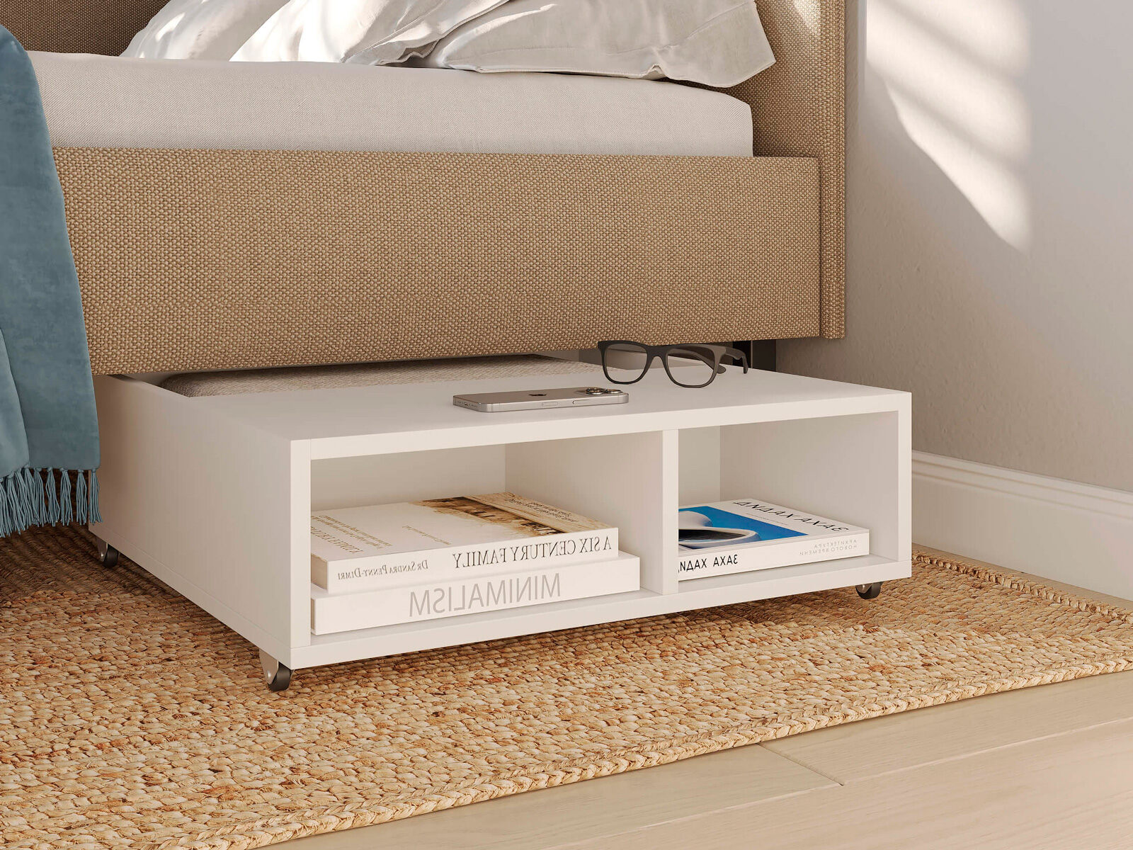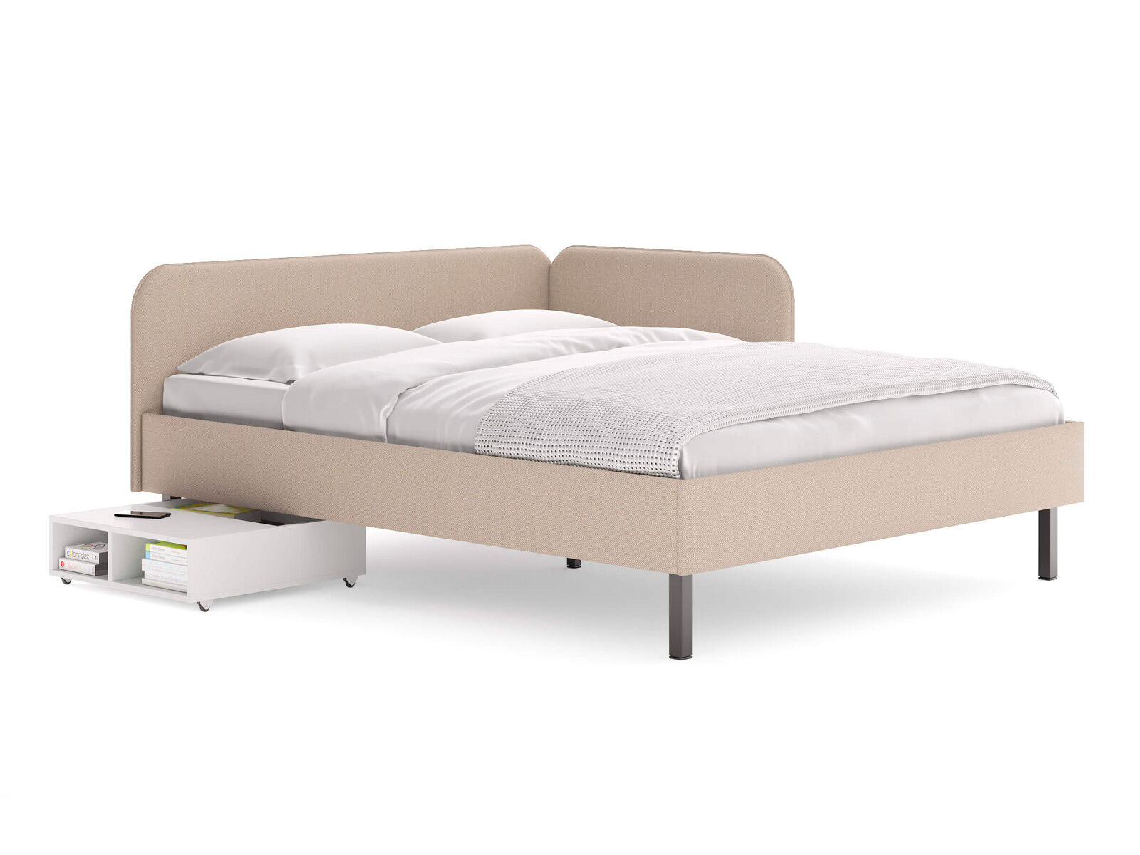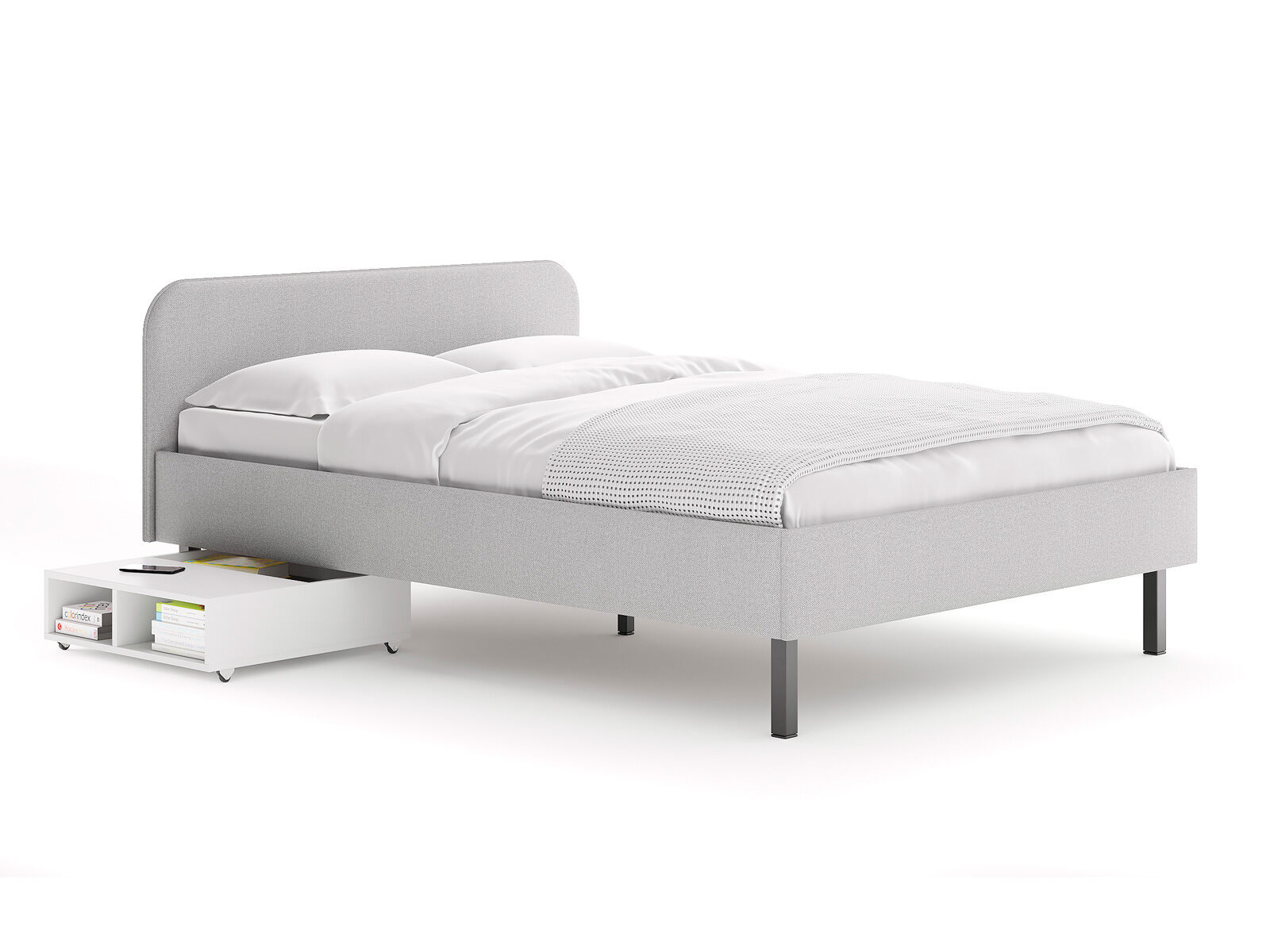 Тумба выкатная - лаконичное и функциональное решение для интерьера в современном стиле и стиле минимализм. Практичная тумба на колесных опорах – это и универсальная прикроватная тумбочка, и дополнительное место для хранения вещей. Идеально сочетается с кроватями Hanna и Julia, является их функциональным дополнением. Тумба подходит для небольших спален и гостиных. Помогает существенно сэкономить место в комнате. Такая тумба позволяет задействовать пространство под кроватью, не загромождает спальню и скрывает от глаз необходимые мелочи. Сочетание открытых и закрытых полок делает тумбу универсальной и современной. Материал исполнения корпуса тумб – ЛДСП, 2 цвета - белый, графит. Надежные колесные опоры позволяют вам легко выдвигать и задвигать тумбу.