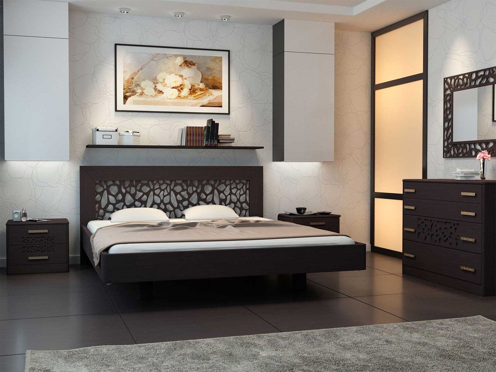 Кровать Веро с высоким, воздушным и стильным резным изголовьем производится из натурального массива ясеня и отличается скругленными углами геометрии изножья кровати, что сводит к минимуму риск случайных травм об углы низко расположенной мебели.