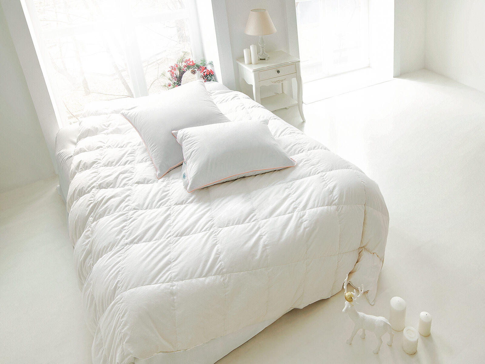 Рекомендации по уходу: стирать каждое изделие отдельно при температуре 40⁰, с использованием специальных средств для пуха, отжим на высоких оборотах барабана, сушить в расправленном виде. Барабанная сушка при строгом соблюдении температуры. Каждая новая стирка сокращает срок службы изделия. Не использовать отбеливающие средства. Регулярно встряхивать и взбивать изделия после проведенной на них ночи. Хранить не герметично запакованными с притоком свежего воздуха. Воздержаться от использования постельного белья из синтетических и смесовых тканей.